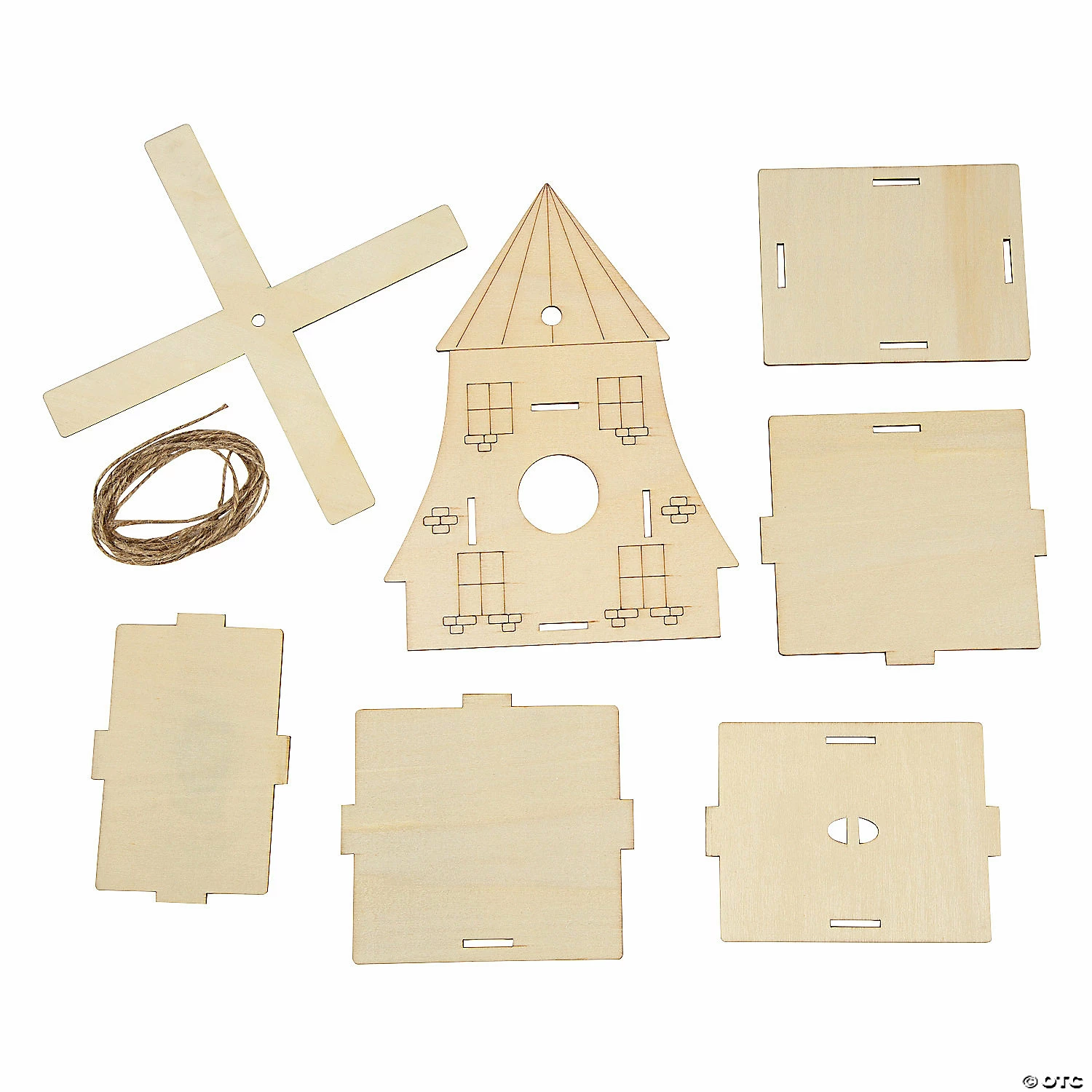 This windmill birdhouse is a neat addition to any backyard! Kids and adults alike will have a blast using paint, embellishments and other craft supplies to decorate these one-of-a-kind DIY crafts. Itβs a great spring or summer activity for the classroom or at home, too. Includes slotted wood pieces, metal brads and jute cording. 5 1/2″ x 4″ x 7 1/2″ Makes 6. All craft kit pieces are pre-packaged for individual use.