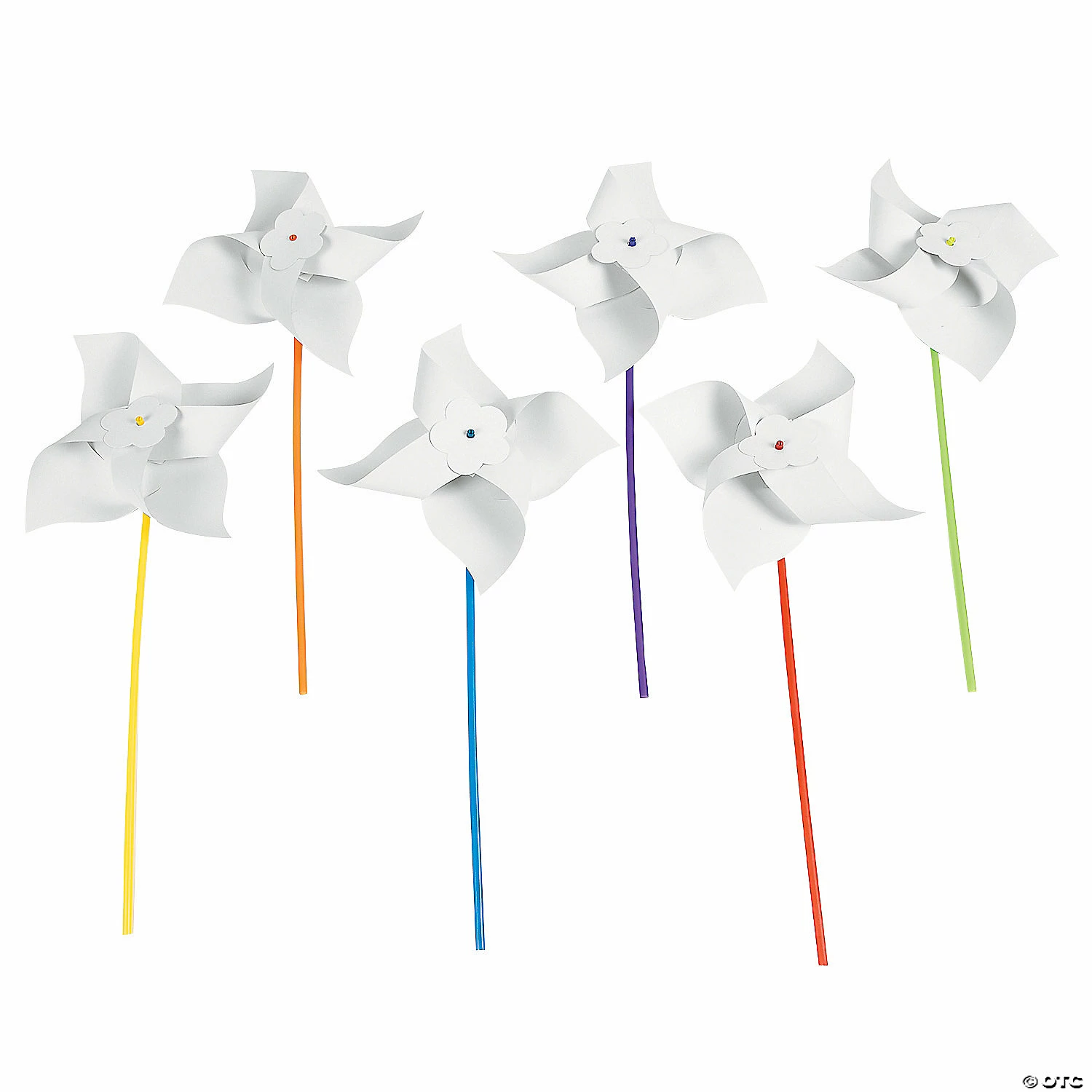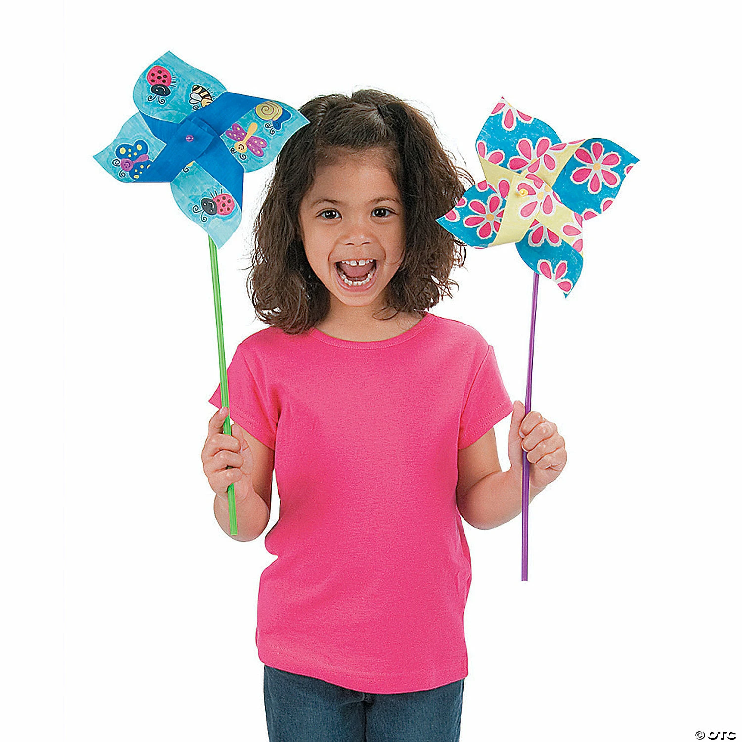 Put a “spin” on craft time! Kids love adding their own decorations and designs to these extra big DIY crafts. Includes 9″ paper pinwheels that attach to 16 1/2″ assorted color plastic handles. (24 pcs. per unit) We recommend using crayons, washable markers, colored pencils, permanent markers or acrylic paint, sold separately online.