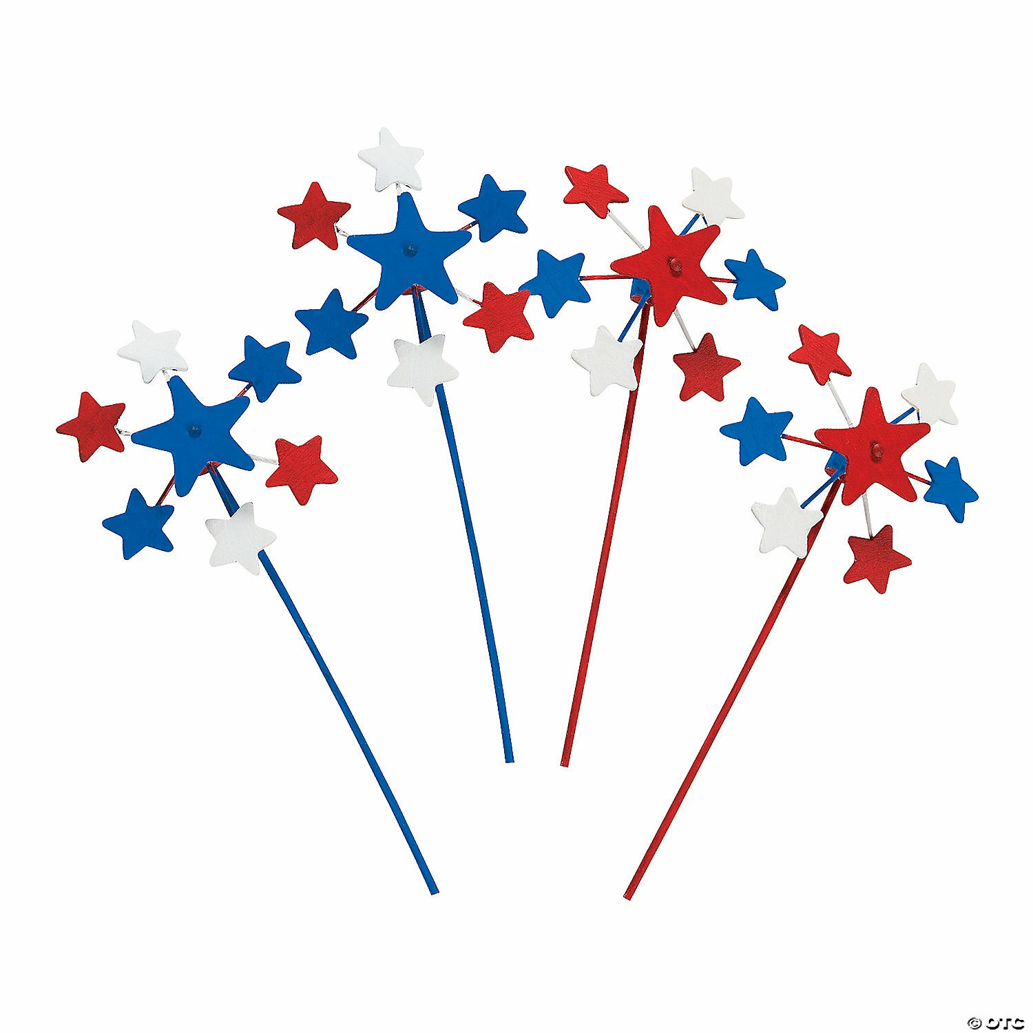 Fun holiday DIY wood craft! Color these red, white and blue for fun 4th of July crafts, too! Each 3 1/2″ pinwheel is on a 6″ wooden stick. Paint sold separately. (1 dozen per unit) © OTC