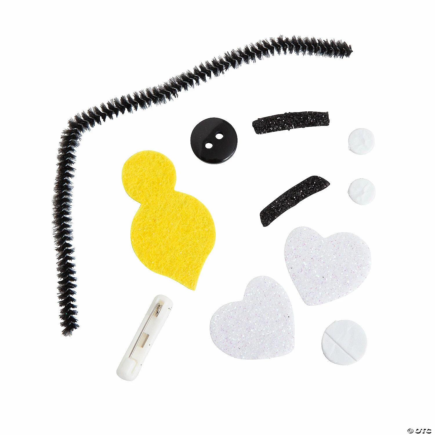 Create some cute bee pins with the help of this easy kit! Far preferable to wearing actual bees as accessories, these felt bee pins have some cute glitter accents and bragging rights as handmade pins. Great as a craft night activity or for a ladiesโ night in, these pins are simple to put together and fun to wear. Includes felt pieces, plastic buttons, metal pins and chenille stems. 1 3/4″ x 1 3/4″ Makes 12. All craft kit pieces are pre-packaged for individual use. Kits include instructions.