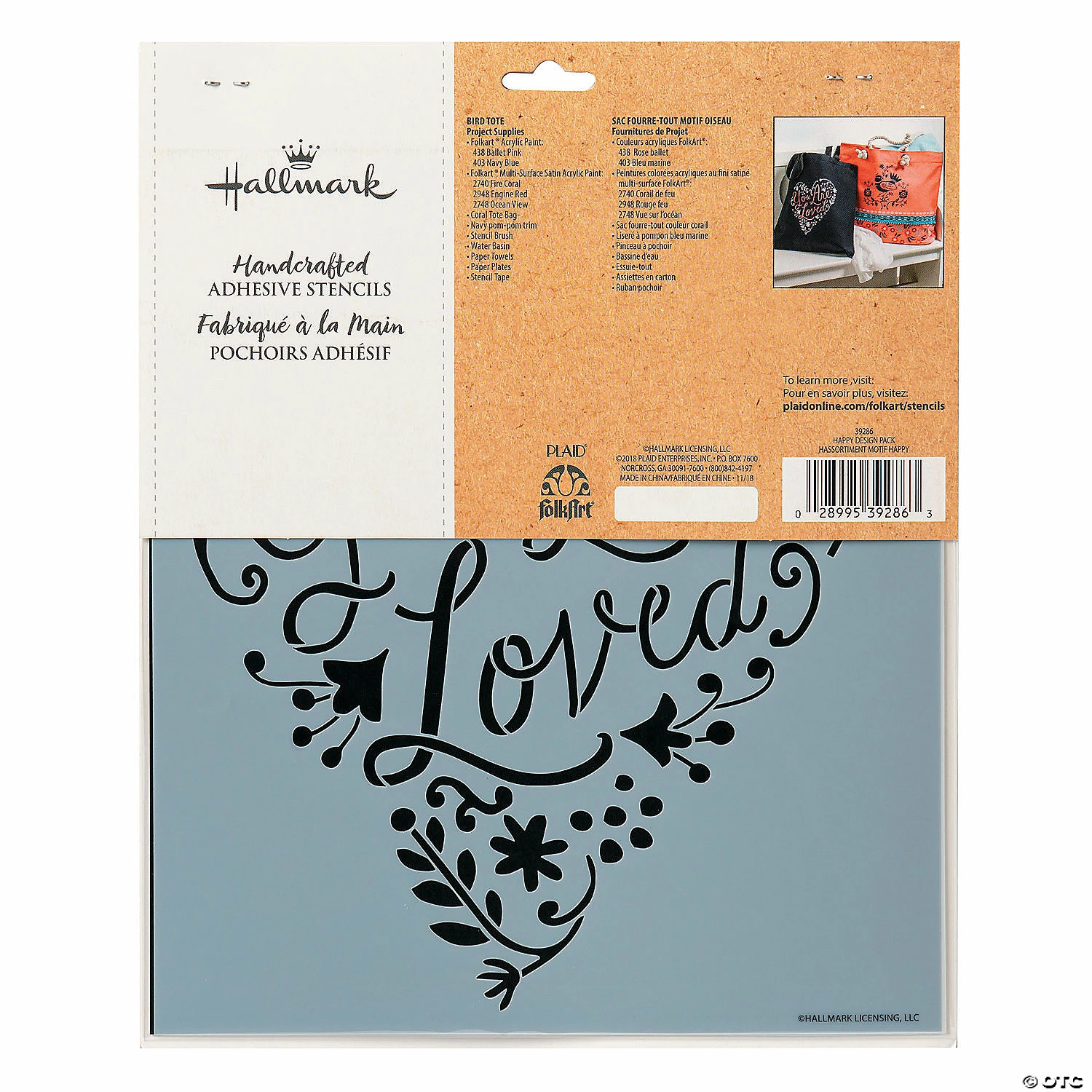 Don’t worry, be happy! These laser-cut stencils are just what you need to make DIY projects that wow. Featuring designs of hearts, flowers and birds, this cheerful collection is a must-have for adult craft supplies. From DIY décor like wall art to gifts like tote bags, you can now easily add personality to almost anything! Plastic. (3 pcs. per set) 8 1/2″ x 9 1/2″ © 2019 Hallmark Licensing, LLC.