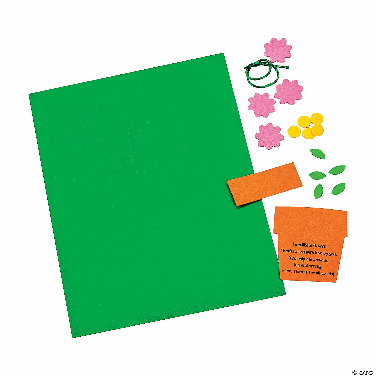 Let each child make a unique wall hanging for mom with this Handprint Flowers & Flowerpot for Mom Craft Kit. A cute addition to your craft supplies, mom can hang it on a wall or door! Trace each childβs hand on the foam and cut out the shapes to create the flowers. All other pieces are pre-cut. Includes a poem: βI am like a flower that’s raised with love by you. You help me grow up big and strong. Mom, thanks for all you do!β 7 3/4″ Some glue required, sold separately. All craft kit pieces are pre-packaged for individual use. Kits include instructions.Craft Instructions May contain satin cording rather than ribbon. We recommend using foam glue, sold separately online. Β© OTC