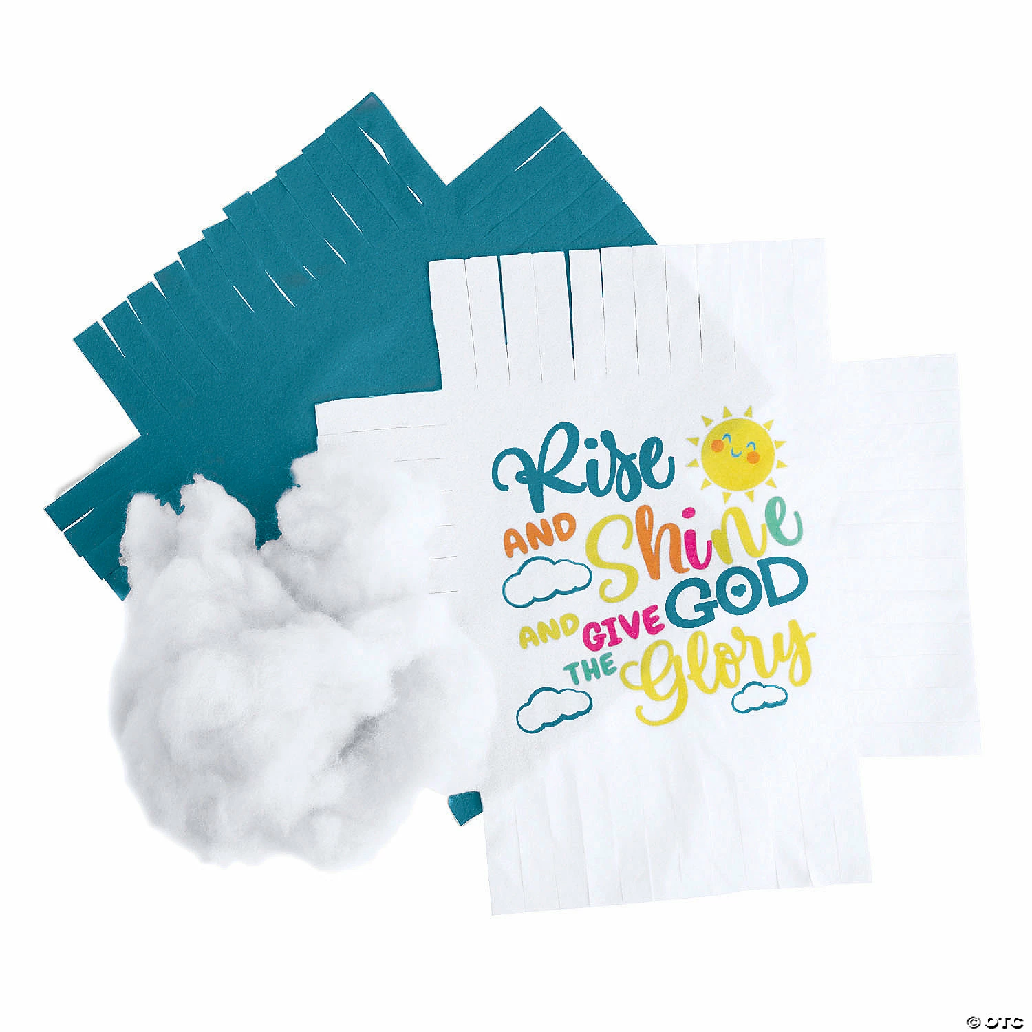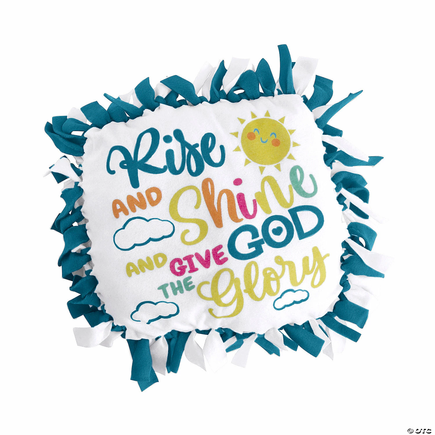 What a great reminder to awaken every morning with the intention of giving glory to God! These fun craft kits create six pillows that can be given as homemade gifts or kept or yourself! A fun craft that is great for a Bible study craft or Sunday School craft, the finished product is a lovely fleece pillow with the message βRise and shine and give God the gloryβ. Includes pre-cut fleece fringe and polyester fiberfill stuffing. Unfinished, 16 1/2″. Makes 6. All craft kit pieces are pre-packaged for individual use. Kits include instructions. Imported. Β© OTCRise and Shine Fleece Pillow Craft Kit Instructions