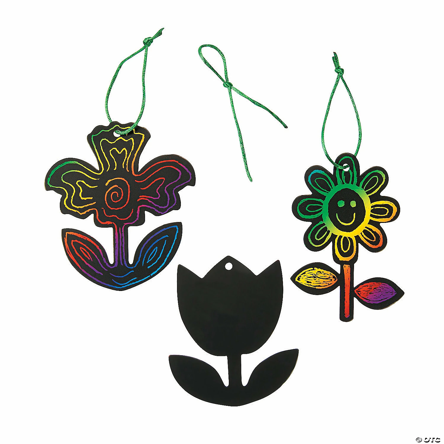 Scratch away the black surface to make these flowers blossom! These color scratches are perfect Easter basket stuffers and great activities that let your little ones help make Easter decorations for your big family gathering. Our Spring Flower Magic Color Scratches are fun for the whole family. Create a garden of color that’s perfect for hanging on the wall, from door handles, coat racks or on the refrigerator! Includes assorted flower shapes, scratching tools and satin cords. Paper. (2 dozen per unit) 4″ – 4 1/2″ ยฉ OTC
