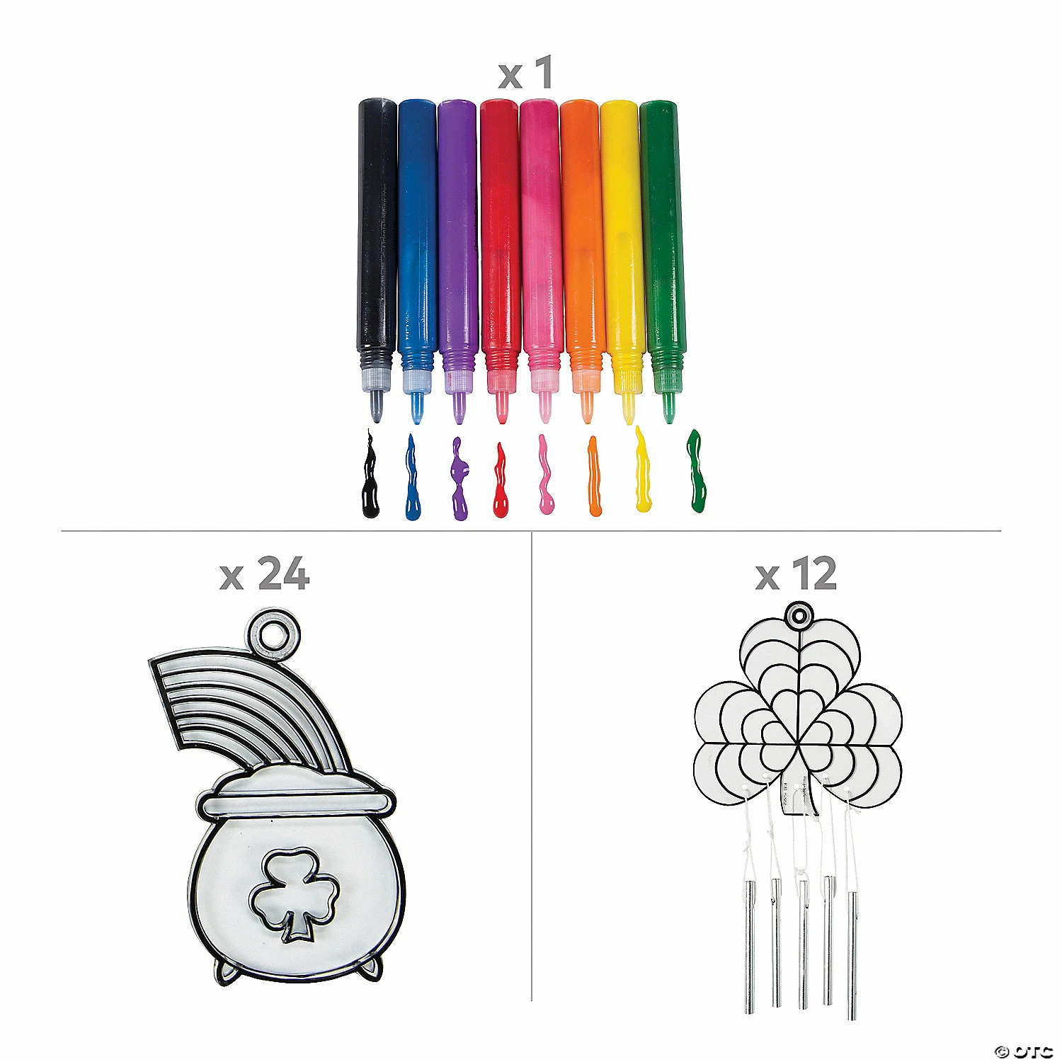 Are you looking for some fun and crafty activities for kids during the St. Patrick’s Day season? This fun kit has a variety of St. Patrick’s Day themed suncatchers and the paint pens to make each suncatcher unique. Great for classroom art time or for a kids’ activity table at a St. Patrick’s Day celebration, this kit makes it easy to get artsy for St. Pat’s. (52 pcs. per unit) Makes 36. Assortment may vary. © OTC